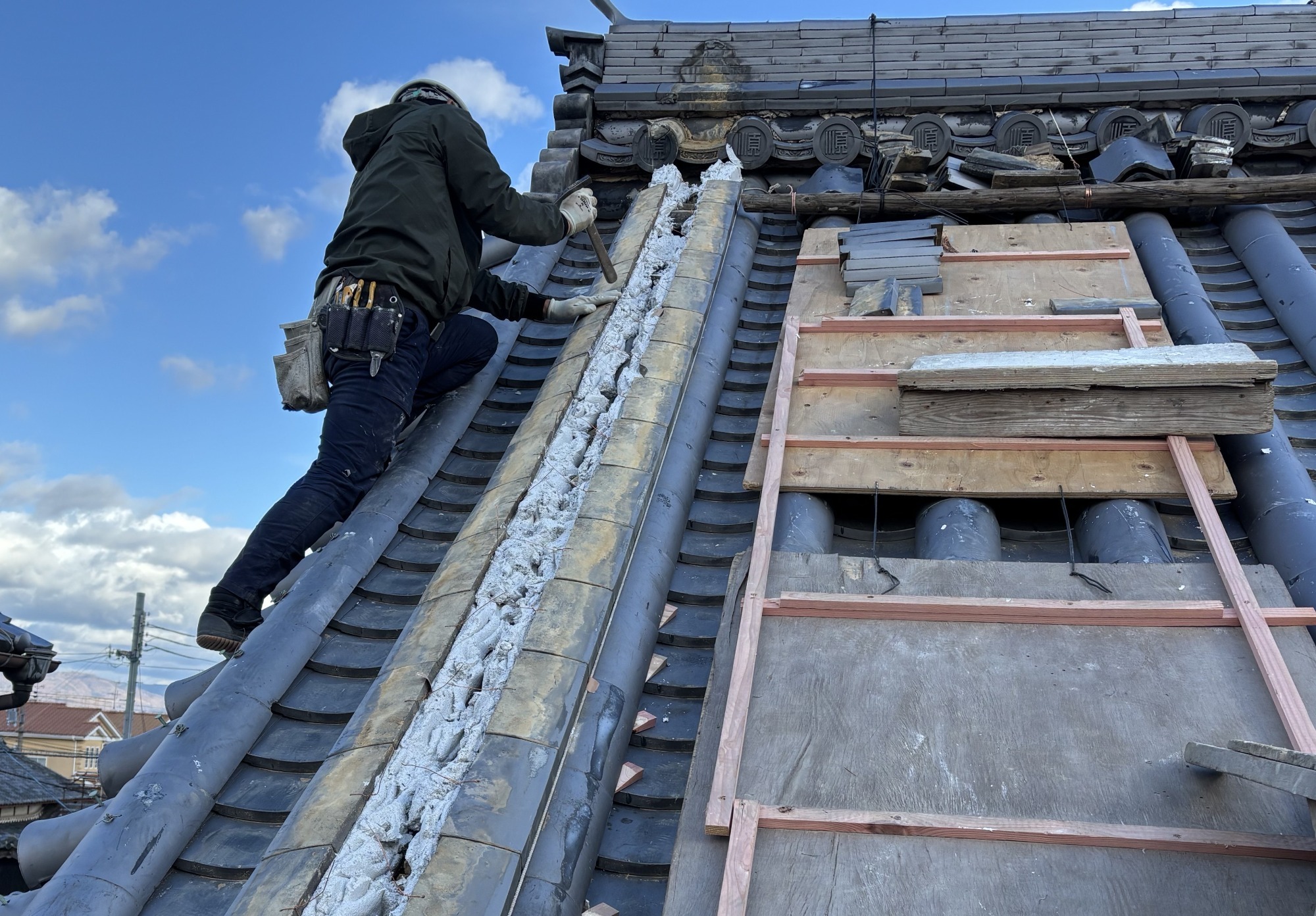 時代と共に、日本瓦を用いた屋根工事も行うことになり瓦工事業へ、